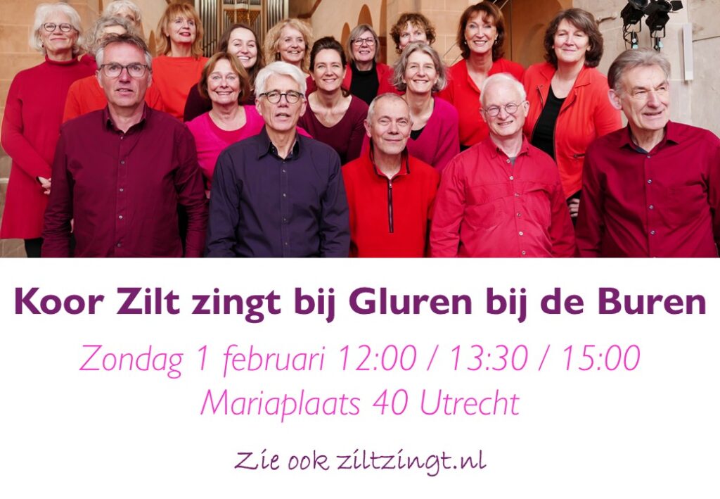 Kun je niet zo lang wachten? Kom dan naar ons op 1 februari optreden tijdens ‘Gluren bij de Buren’.