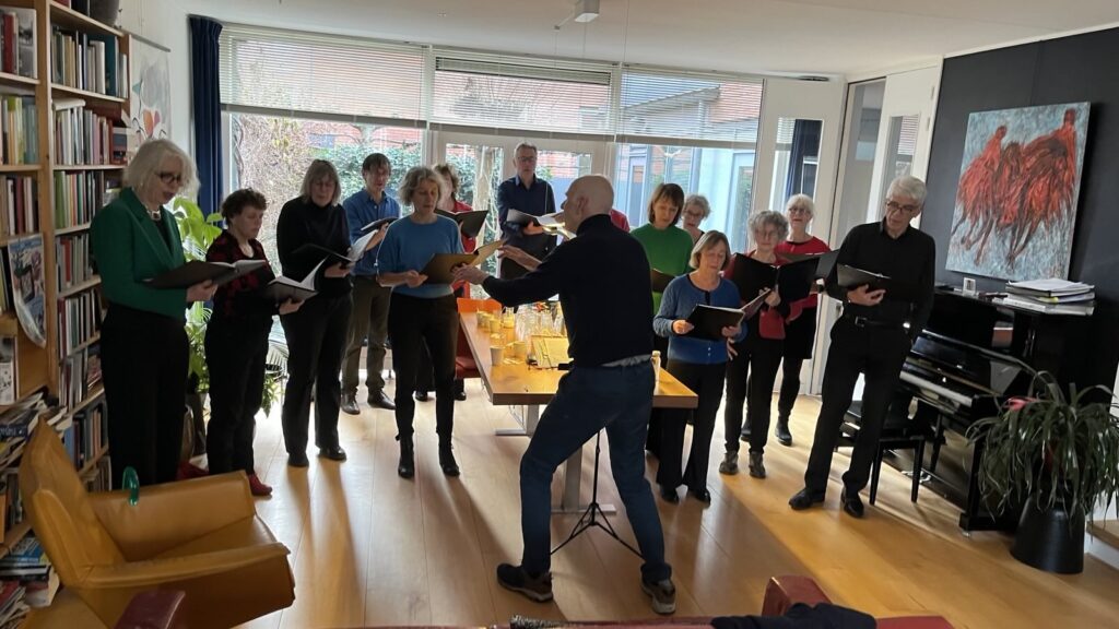 Op zondag 1 februari traden we drie keer op tijdens Gluren bij de Buren in Utrecht. Een van onze koorleden stelde haar huis ter beschikking. Het was drie keer volle bak! Bij de laatste sessie verleidde onze dirigent Pim Brackenhoff het publiek om mee te zingen met een ter plekke geïmproviseerd ‘Gluren bij de Buren’ lied (zie het filmpje hieronder).